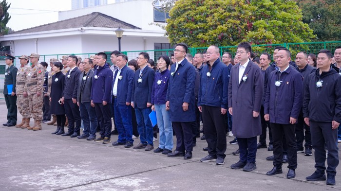 活动现场庄严肃穆,全体人员整齐列队,低头默哀,以最朴实最深情的方式表达对革命先烈的沉痛哀悼和无限追思。