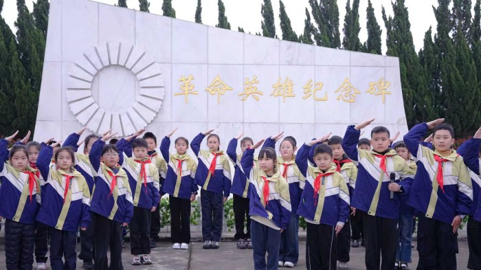 少先队员代表带来的诗朗诵《清明,致敬不朽的英雄》,稚嫩而真挚的声音追忆了革命烈士们为中华民族独立和解放事业做出的伟大贡献,立志成为新时代的建设者和接班人。