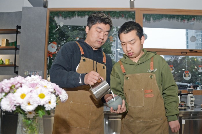 自2015年起,孔娟就开始从事自孤独症儿童的康复与就业支持工作。她介绍,咖啡馆所在的这座三层小楼,原本就是一家孤独症康复中心,许多无法进入普通学校就读的孩子从小就在这里学说话、学社交、学运动、学认知,会在音乐、美术、游戏中逐渐敞开心扉,也会在文化课程中学习知识。“有时候,他们走丢了,却记得回到这里来。”
