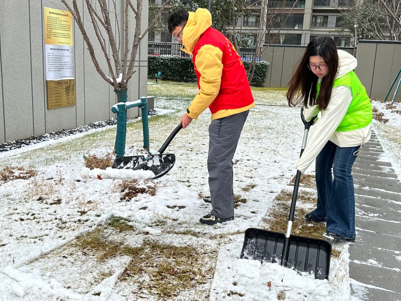 村社区与市场同步行动,金三角小商品市场、九龙菜市场组织人员清理通道、铺设防滑垫;三里亚新、青竹苑等社区集结党员、志愿者与物业,奋战清理小区主干道及单元门口积雪。全域上下用坚守筑牢防线,保障道路畅通与居民出行安全。