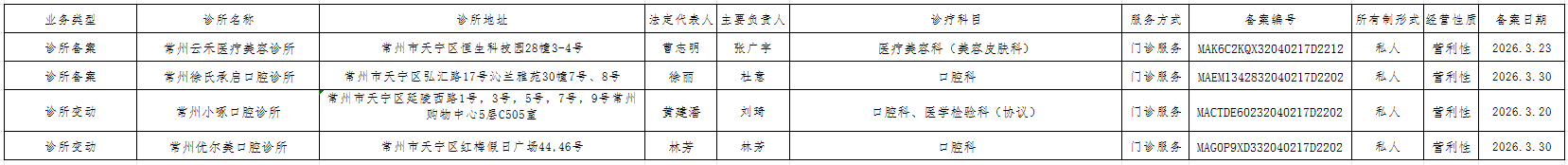 根据《医疗机构管理条例》及《诊所备案管理暂行办法》等有关规定,现将诊所备案信息予以公示。