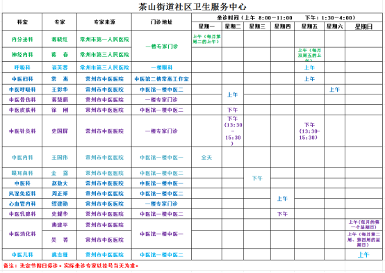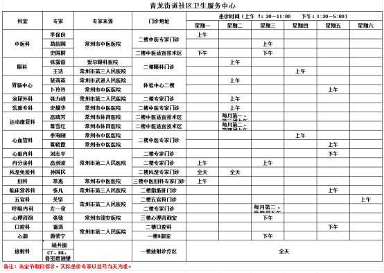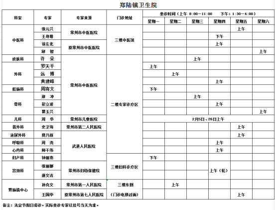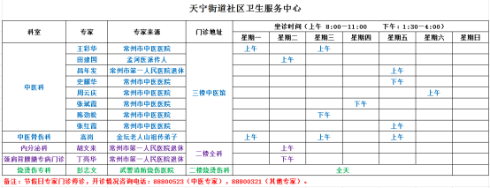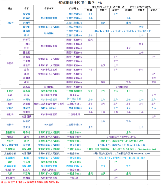 天宁区基层医疗卫生机构专家坐诊一览表(2026年2月)
