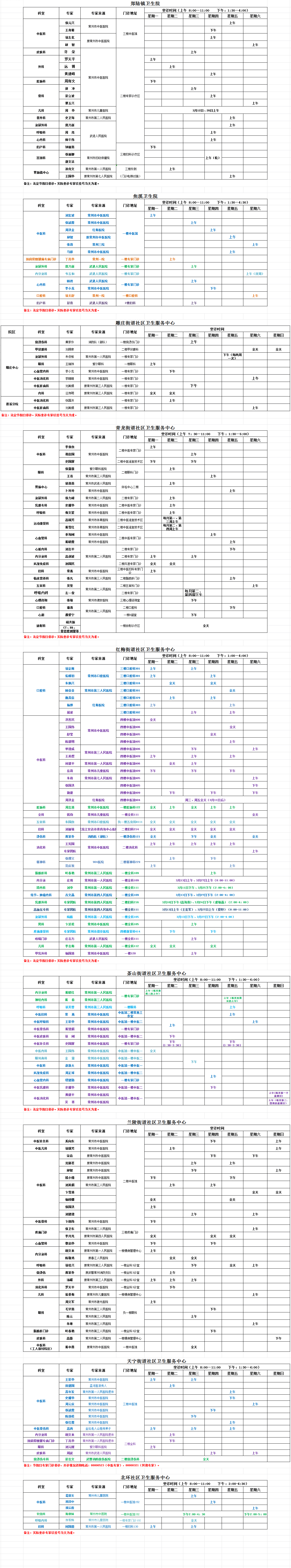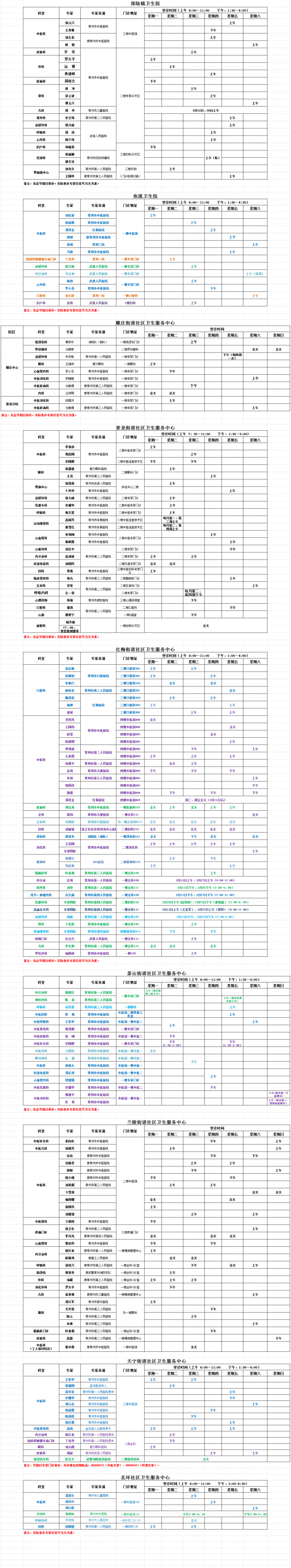 天宁区基层医疗卫生机构专家门诊一览表(3月)