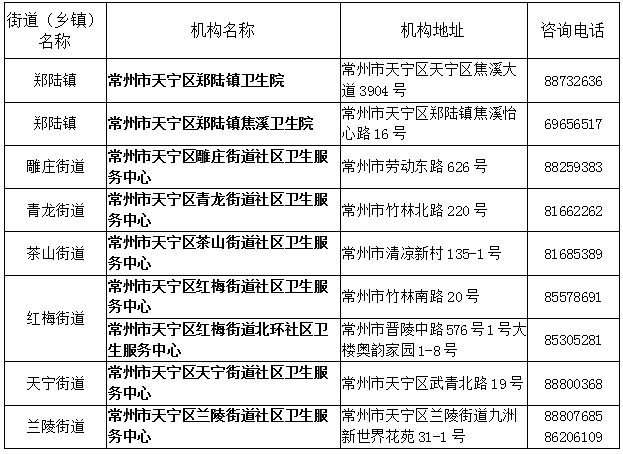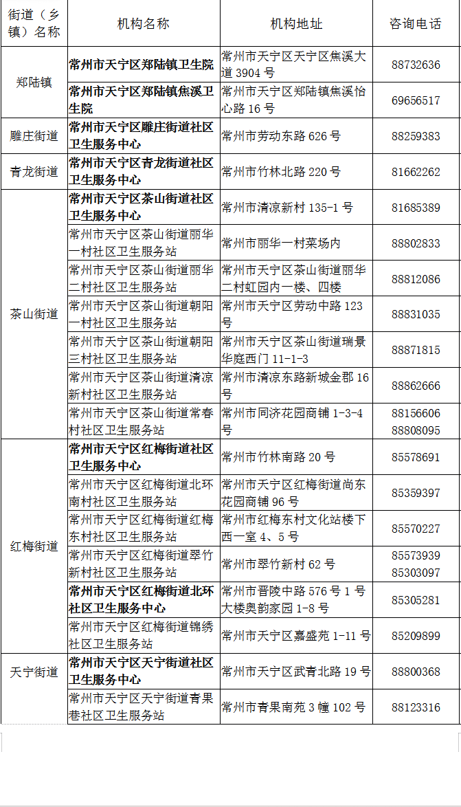 1. 天宁区65岁及以上常住居民体检机构一览表
