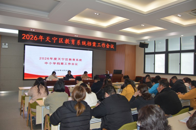 为进一步提升全区教育系统档案工作规范化、科学化管理水平,2026年3月26日,天宁区教育系统中小学档案工作会议在常州市第二实验小学翰学校区召开。天宁区教育服务中心主任杨红妹、天宁区档案局档案管理科科长王建娟出席会议,全区各中小学分管领导及档案管理人员参加会议,会议由区教育局办公室陶佳丽主任主持。