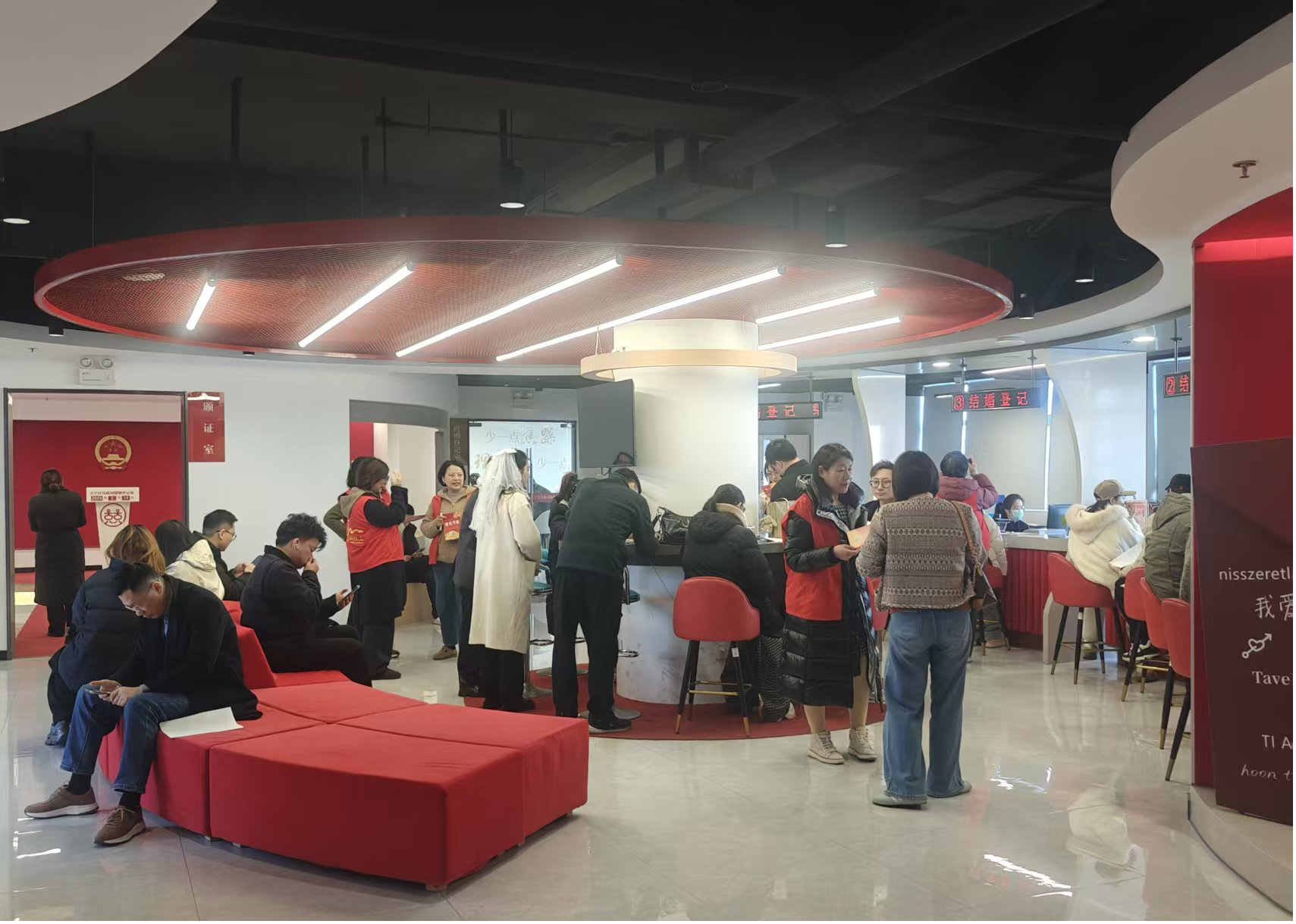 上午10时至11时30分,常州市婚姻协会同步在万象城了开展“执手情人节・爱暖中国年”主题直播活动。常州市婚姻协会婚姻辅导专家团执行团长顾小清做客直播间,与天宁区、钟楼区、武进区、经开区婚姻登记处进行实时连线。镜头全方位展现各婚姻登记大厅有序服务场景,各区负责人依次介绍特色颁证活动及便民服务举措,并为全市新人送上美好祝福。直播吸引数千名网友在线观看,线上祝福持续刷屏,营造出“全城同庆、云端共证”的浓厚氛围。