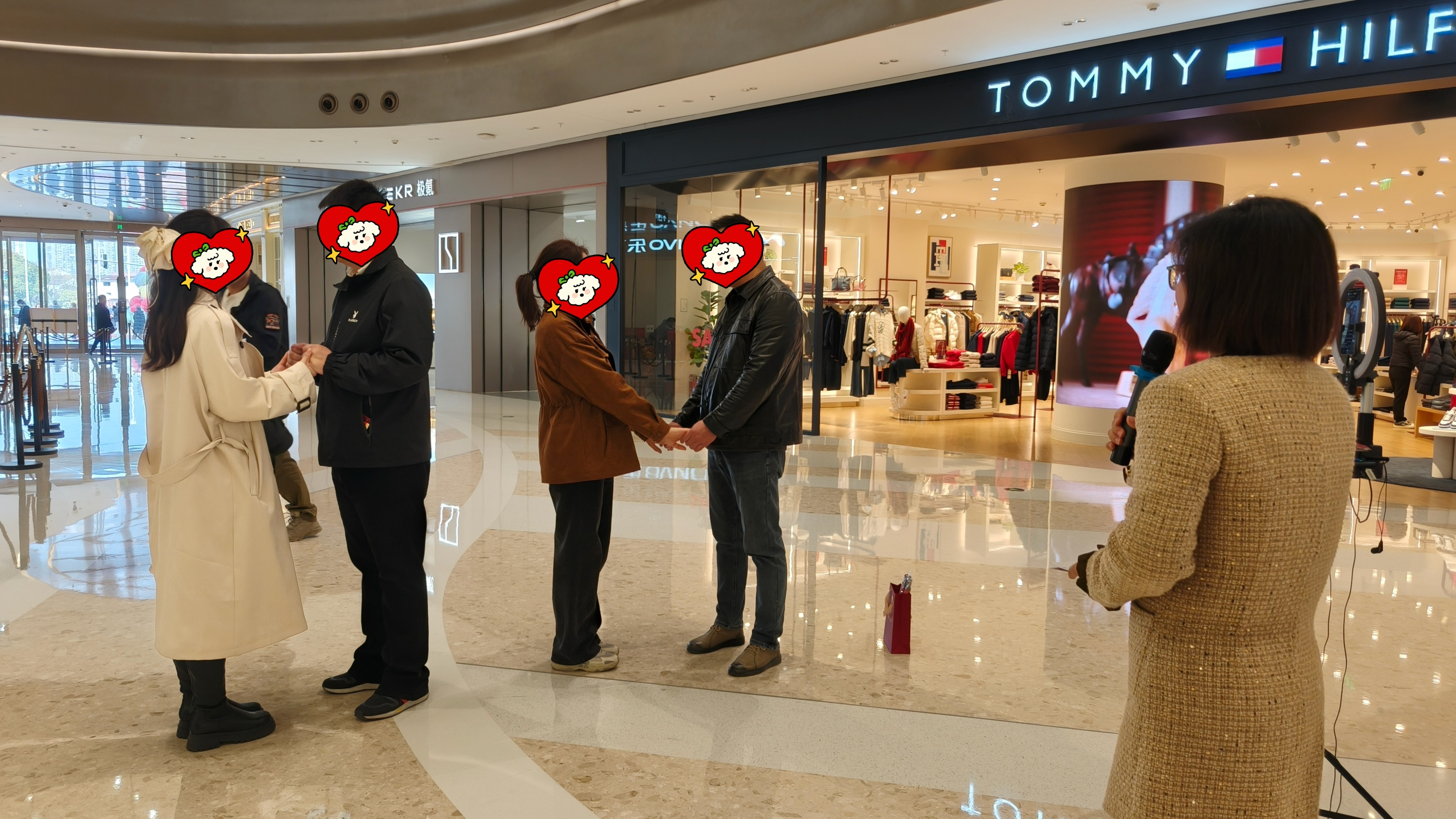 万象城一楼中庭氛围温馨、布置一新,花车造型、打卡区域及爱情主题互动点位依次呈现,现场处处洋溢着喜庆祥和与甜蜜祝福。活动精心设置“爱情卡”“爱的五种语言”“爱的存款”等互动体验环节,由专业婚姻辅导师与志愿者现场引导,帮助新人与市民在轻松互动中学习婚姻经营技巧,提升家庭幸福能力。特色打卡区人气高涨,新人们纷纷定格幸福瞬间,现场气氛热烈融洽。