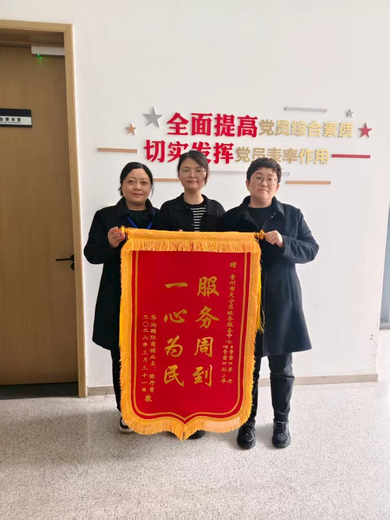 此前,华润国际商铺业主张丹青在办理营业执照和食品经营许可证相关业务时,窗口工作人员全程耐心答疑、高效办理,用细致周到的服务为群众解决了实际问题。这面锦旗不仅是对工作人员专业服务的高度认可,更是对政务服务中心工作的肯定。