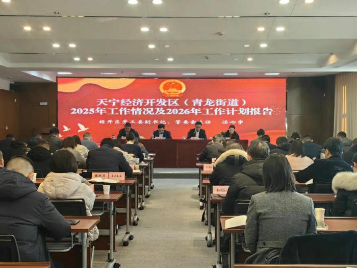 经开区党工委副书记、管委会主任汤心宇向大会作《天宁经济开发区(青龙街道)2025年工作情况及2026年工作计划报告》。